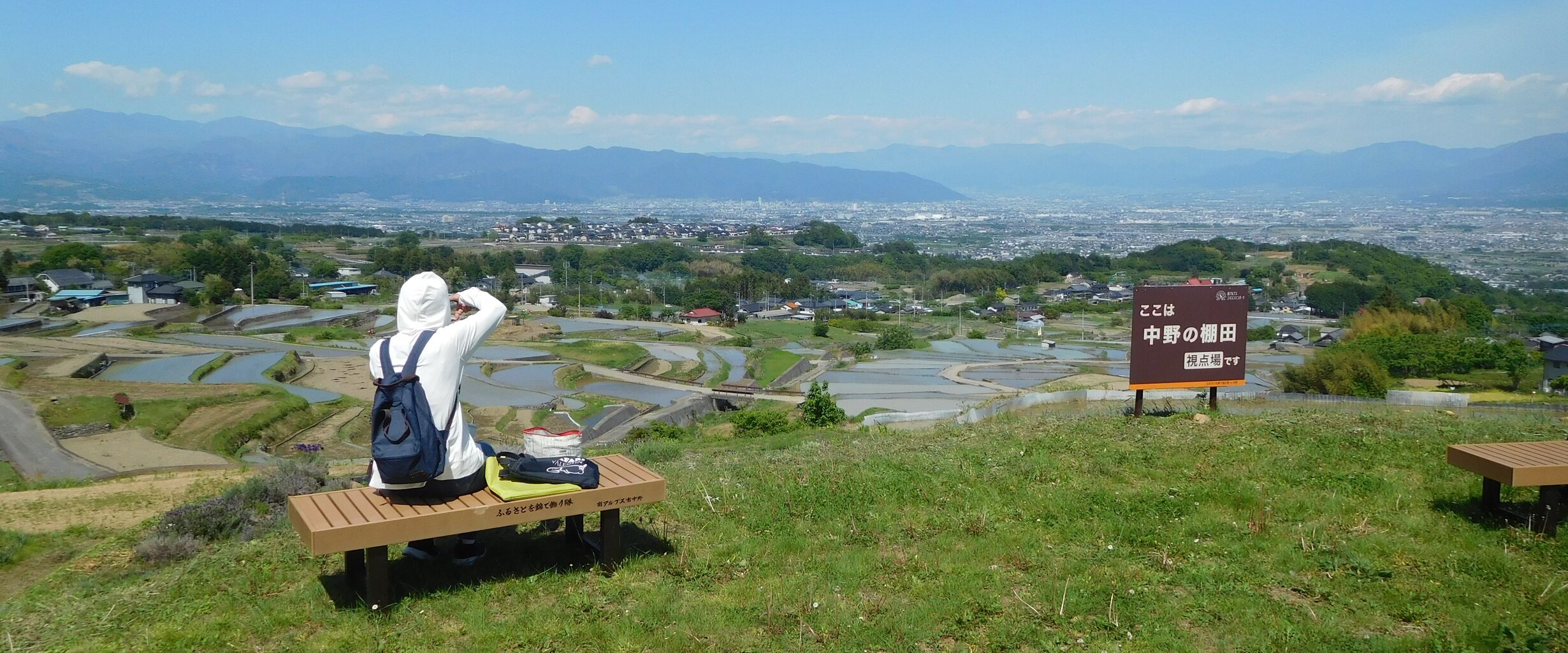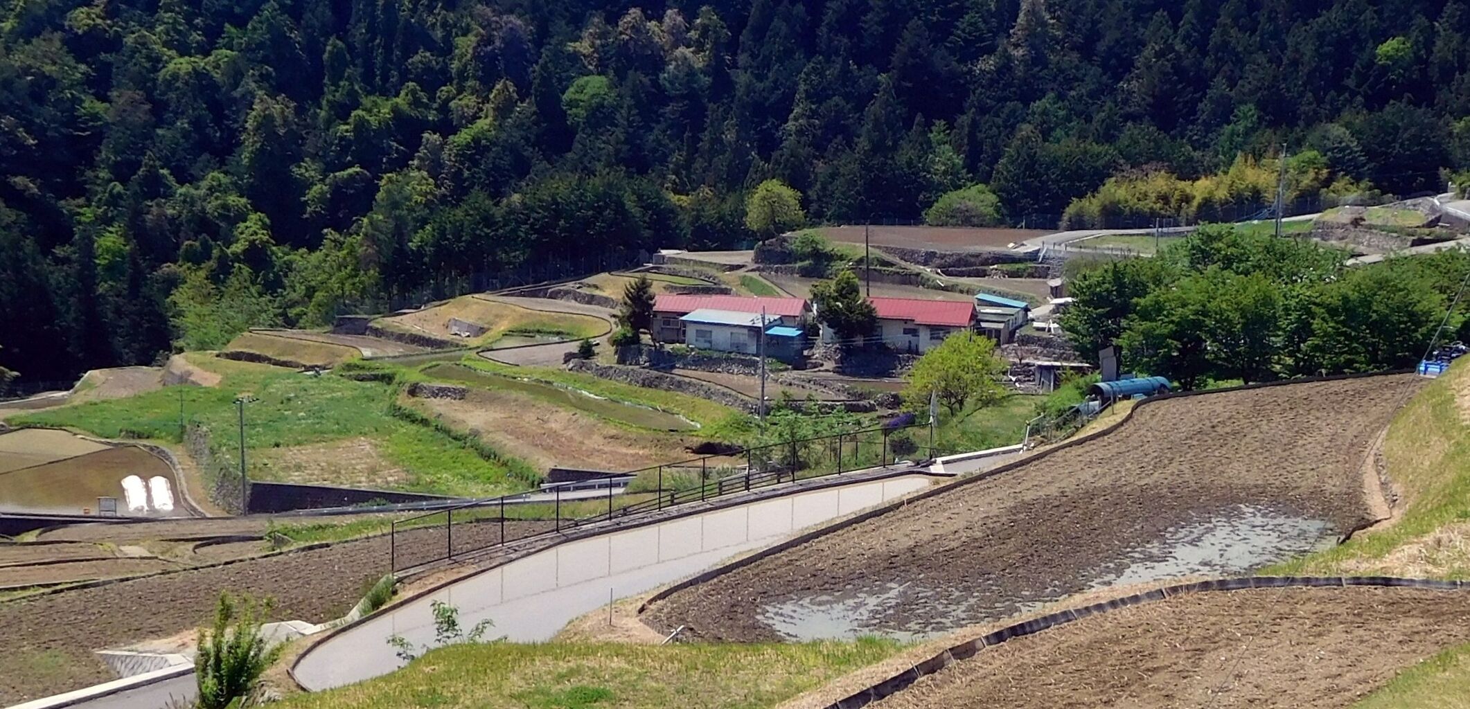 2025年08月30日 山梨車中泊棚田スケッチ旅・中野の棚田(油彩) にほんブログ村南アルプス市の中野の棚田は大きく美しい。小さな展望広場にはベンチが2つある。正面には農道が弧を描き下って行き、農道の両側に、間口が接するように扇状に棚田が拡がっている。山梨県南アルプス市中野の棚田(油彩P10)ほんの数日前に田に水が入ったようだ。代掻きのタイミングのズレで濁りが異なり、田面の色模様が美しい。左手には少し勾配のある棚田が拡がり、その石垣も美しい。営々と働いてきた先人の軌跡だ。 タグ :#山梨の棚田#中野の棚田#油彩風景画・