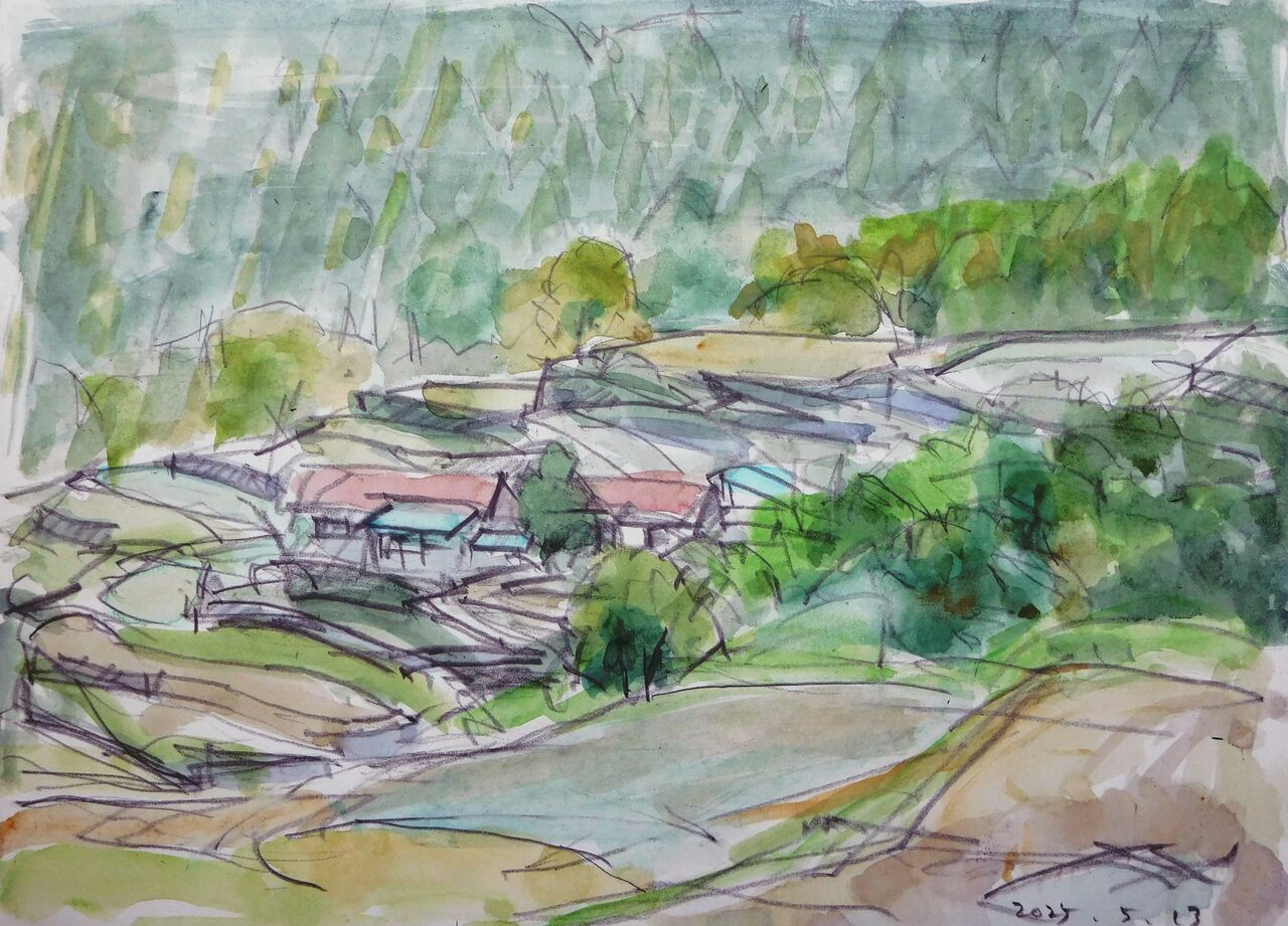 目的地近くで、カーナビに同じ狭い路地をグルグルと廻され、どうにもならない。カーナビを無視し、ようやく棚田の入り口らしき路地に入った。